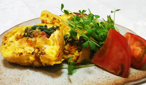 フライパンに油をしき、先程の油揚げを溶き卵にくぐらせ、具を詰めた面から焼きます。